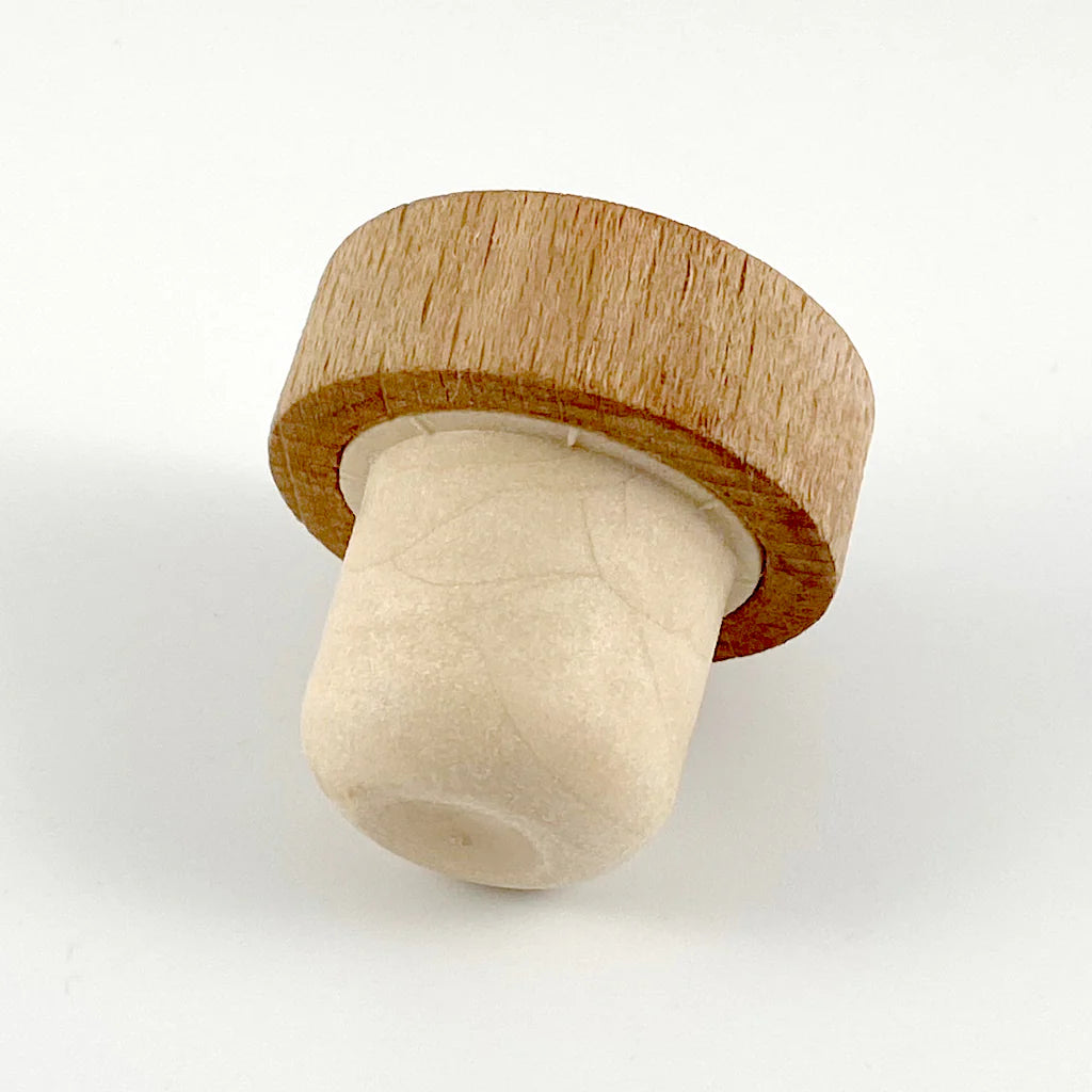 Corcho para botellas con tope de madera. Tamaño del diamétro en milimetro para tope de botella.